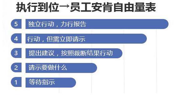 最后,鄭博士還為大家介紹了安肯員工自由量表,企業(yè)員工們可以從五個層級來評定自己的行動自由量級,企業(yè)也要盡可能在部屬處理的范圍內,給與對等的責任與行動自由。